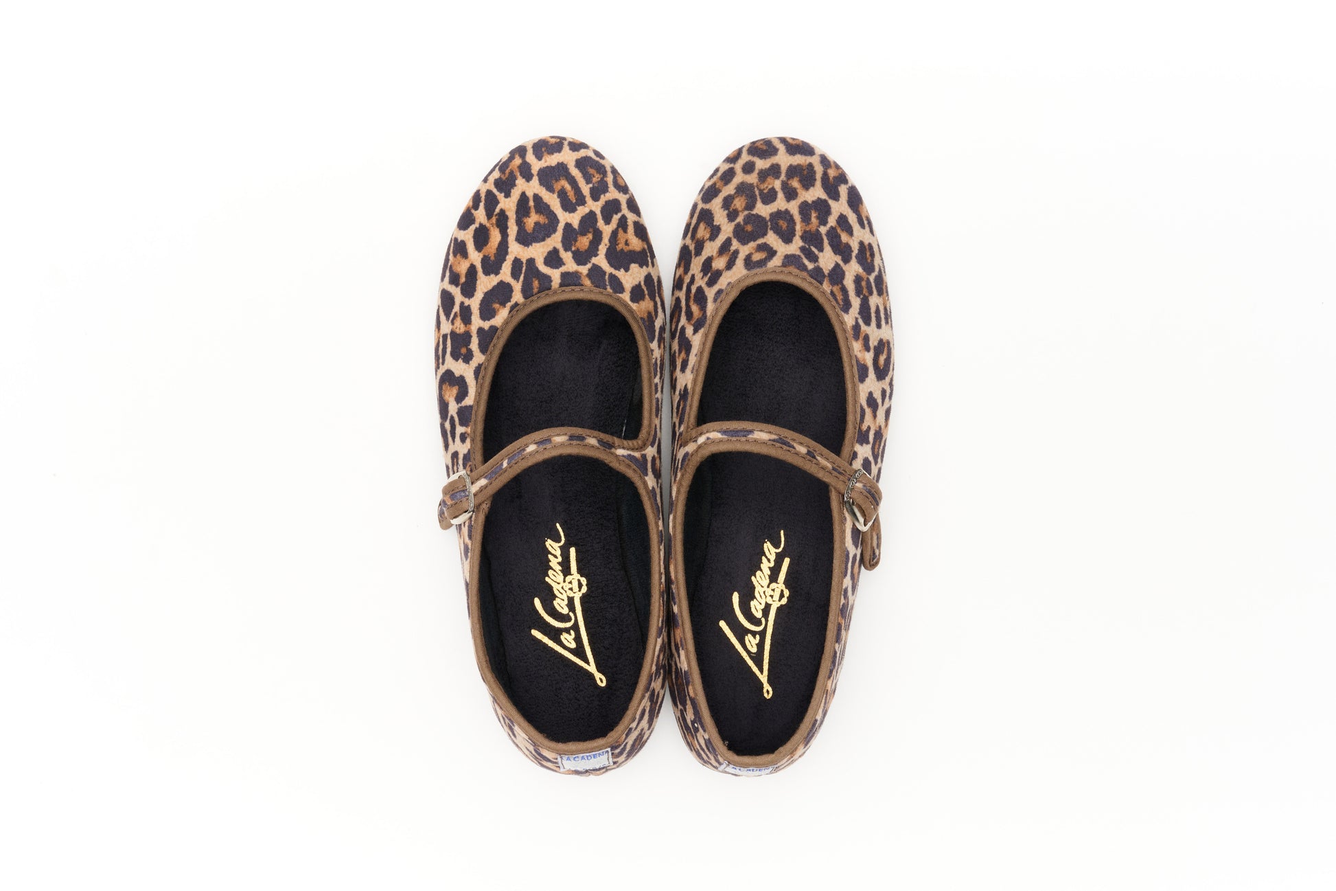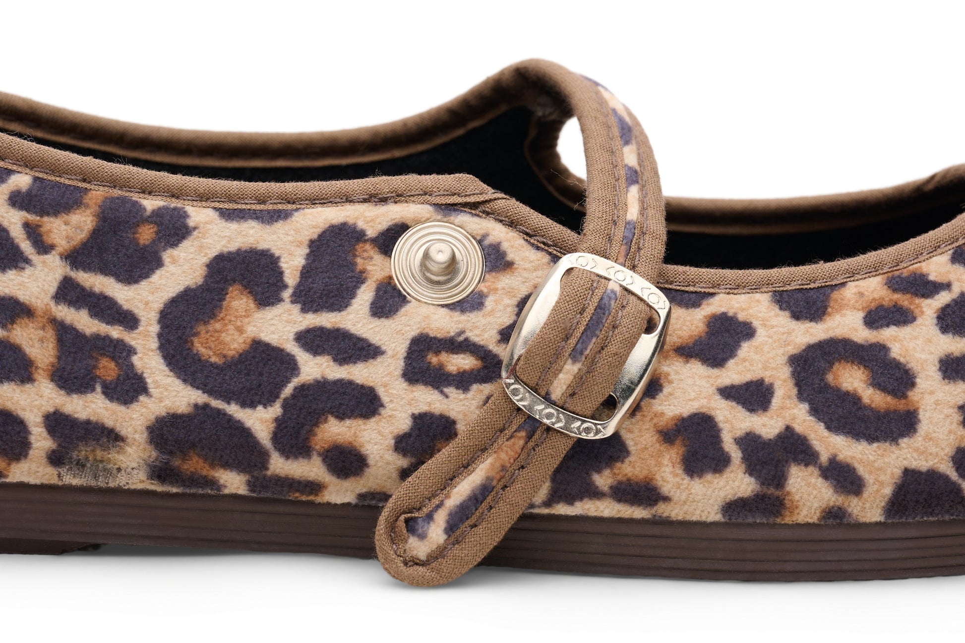 은은한 색감이 돋보이는 레오파드 메리제인. 똑딱이 버튼으로 쉽게 여닫을 수 있습니다.