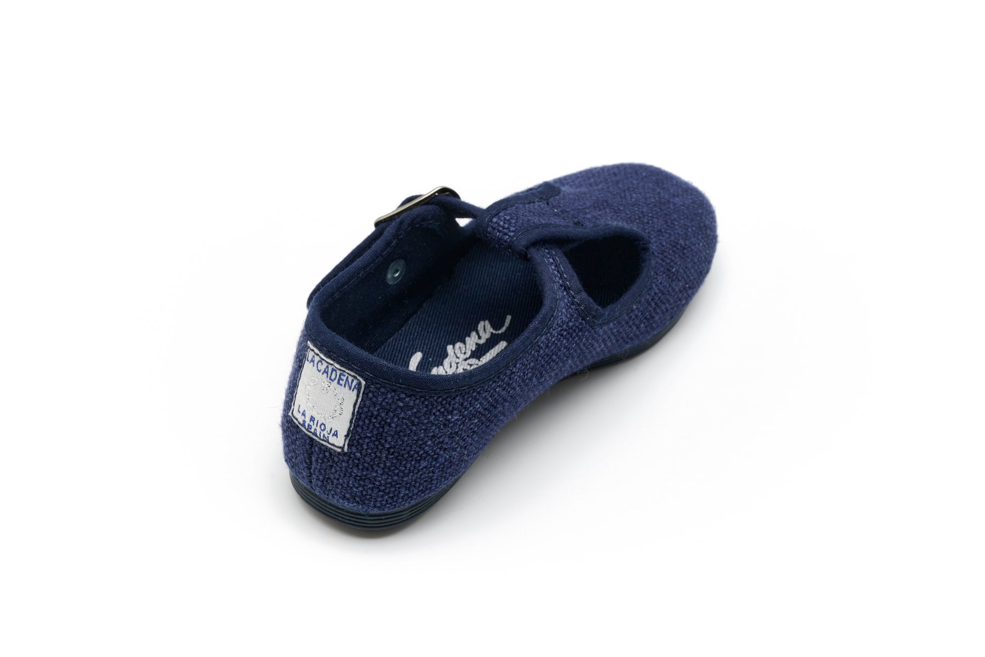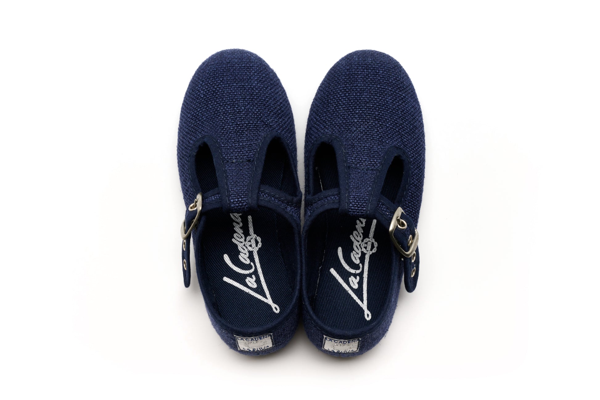벨트형 버클이 적용된 린넨 소재의 T 스트랩 샌들